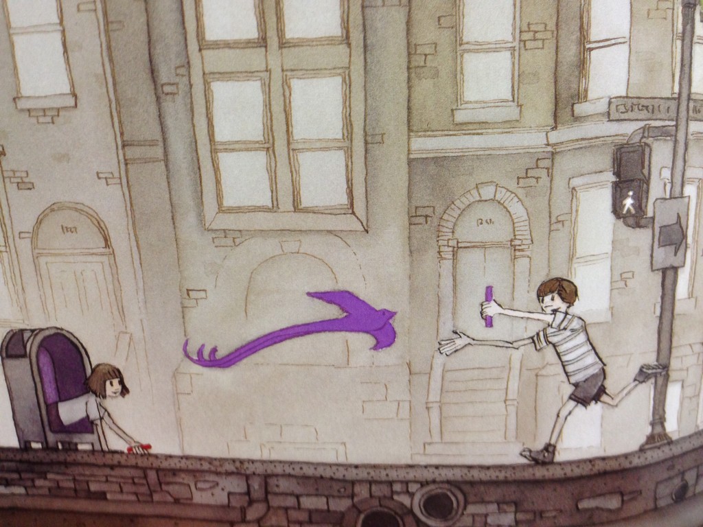 Sauvée de ce périple fantastique par un mystérieux oiseau violet, la petite fille pourra sortir de ce monde fantasmagorique et découvrir l’amitié…