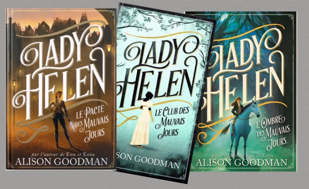 Divisée en trois tomes, les aventures de Lady Helen sont un pur délice du genre ! Tout y est : contexte historique, héroïne innocente et ignorante de son destin d’Héritière, méchants TRES méchants et héros sulfureux et tourmenté. Ecrite d’une plume alerte, cette saga aux rebondissements parfaitement contrôlés et judicieusement amenés se lit d’une traite – attendez vous d’ailleurs à oublier un peu le monde qui vous entoure pendant les 1800 et quelques pages de la trilogie…