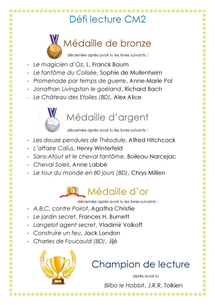 Il n’y a bien sûr aucune note et ce Défi ne figure pas dans leurs bulletins ! Je vérifie juste, avec 2-3 questions quand ils me rapportent le livre, qu’ils l’ont lu et compris. Pour chaque niveau de lecture (médaille de bronze, médaille d’argent, médaille d’or et Champion de lecture), il y a cinq livres à lire : les styles sont très variés car je veux justement que mes élèves puissent découvrir ce qu’ils aiment à travers ce challenge littéraire. Je leur permets ainsi de lire du fantastique, des romans policiers, des BD, des romans historiques… en espérant développer leur curiosité ! Et une fois qu’ils ont lu les cinq livres, ils remportent la médaille (sous forme de diplôme en papier) et peuvent passer au niveau supérieur. Vous verriez alors leurs sourires et la fierté qu’ils ont de repartir avec ce beau diplôme !