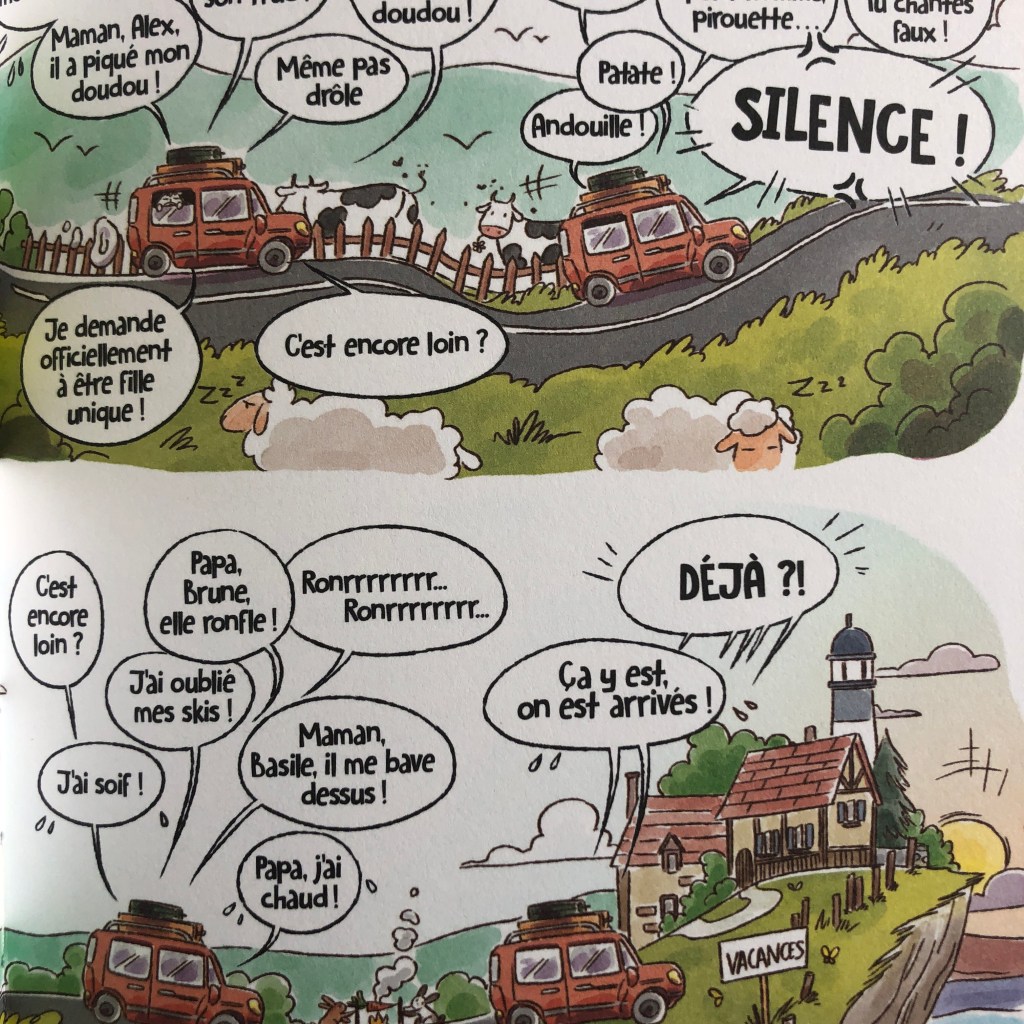 La bande dessinée n’est pas conçue comme une aventure linéaire même s’il y a le fil rouge des vacances mais comme une succession de planches (très) humoristiques : parents et enfants se retrouveront dans les réparties égrenées au fil des bulles et le petit lecteur retrouve là la « touche » Beaupère.