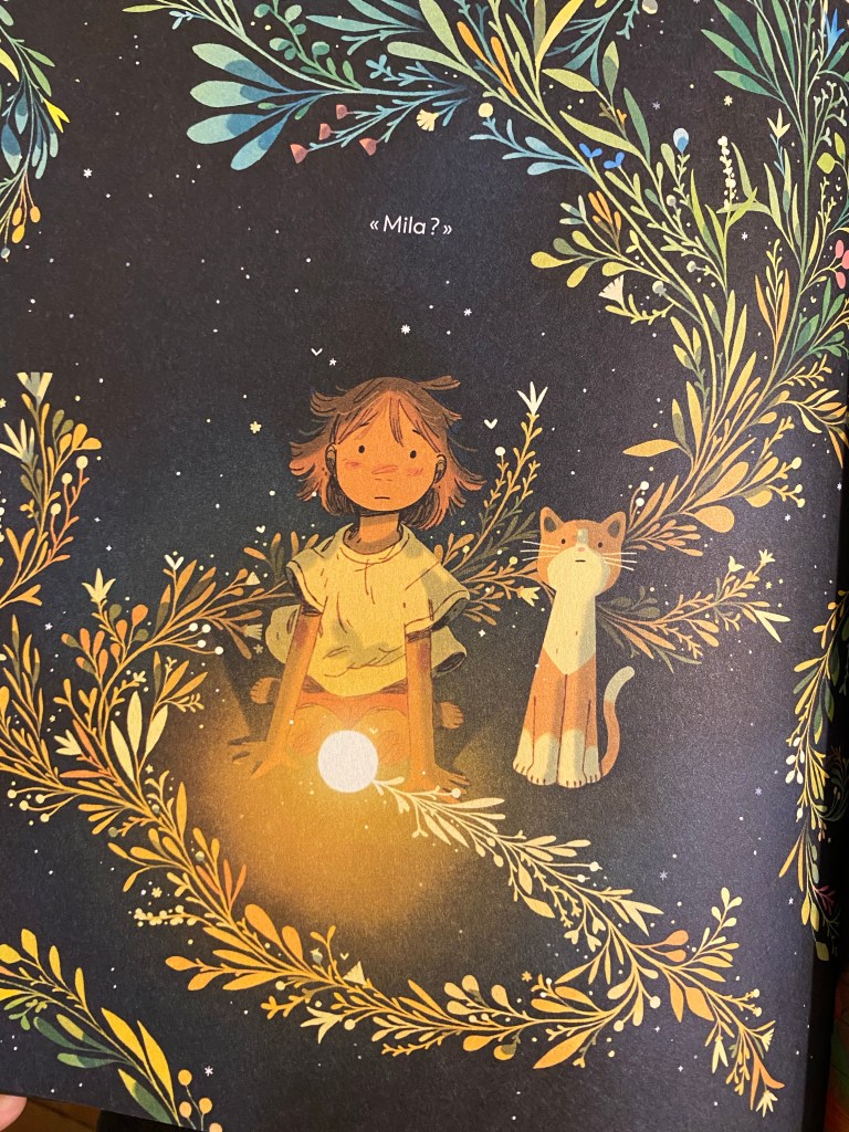 Voici le résumé qu’en fait l’École des Loisirs : À cause du nouveau travail de son père, Mila doit quitter son paradis terrestre en pleine nature pour la grande ville, triste et grise. Se laisser priver longtemps des plantes, des vagues, des arbres, des fleurs et surtout de la comète qu’elle a vue par une belle nuit ? Pas question. Riche de ses souvenirs, de ses rêves, de son sens de l’observation, de ses crayons et d’un peu de magie, Mila réagit.