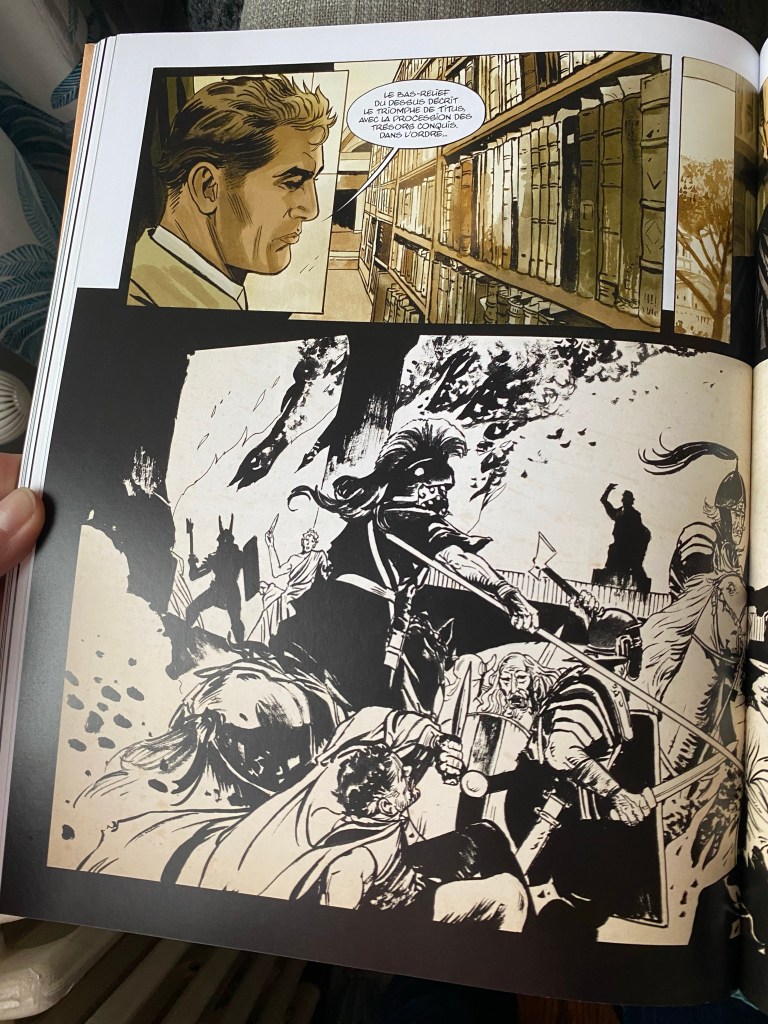 Point de détail qui m’a fait « tiqué » en cours de lecture : Alexandre est veuf. Pour échapper aux sbires de la police fasciste, il trouve refuge au Vatican où il passera quelques années. Lorsqu’il est envoyé à Jérusalem, c’est comme prêtre. Pour ma part, j’ai compris qu’il s’agissait d’une couverture fictive, lui permettant de bénéficier de la protection papale et qui ne l’empêche donc pas de tomber amoureux d’une jeune femme croisée au cours de son enquête. Cette théorie perso est étayée par le fait qu’on le voit très souvent en civil au fil des pages. Mais comme, à un moment, il passe à l’acte avec elle, je me suis prise à douter et à espérer que j’avais vraiment bien compris l’intrigue ! 😅