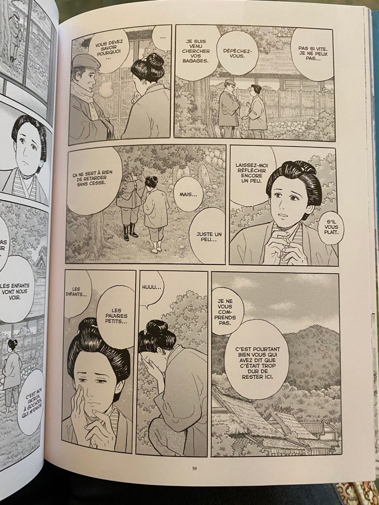 On y suit en parallèle Tomoji (célèbre au Japon pour avoir fondé une secte bouddhiste) qui vit dans la campagne non loin du mont Fuji et son cousin Fumiaki, photographe à Tokyo. La vie s’écoule entre joies et chagrins, dans le magasin familial, à l’école, dans les champs et le lecteur s’attache à cette jeune fille qui traverse tant d’épreuves et que l’on quitte à reget au seuil de sa vie adulte.