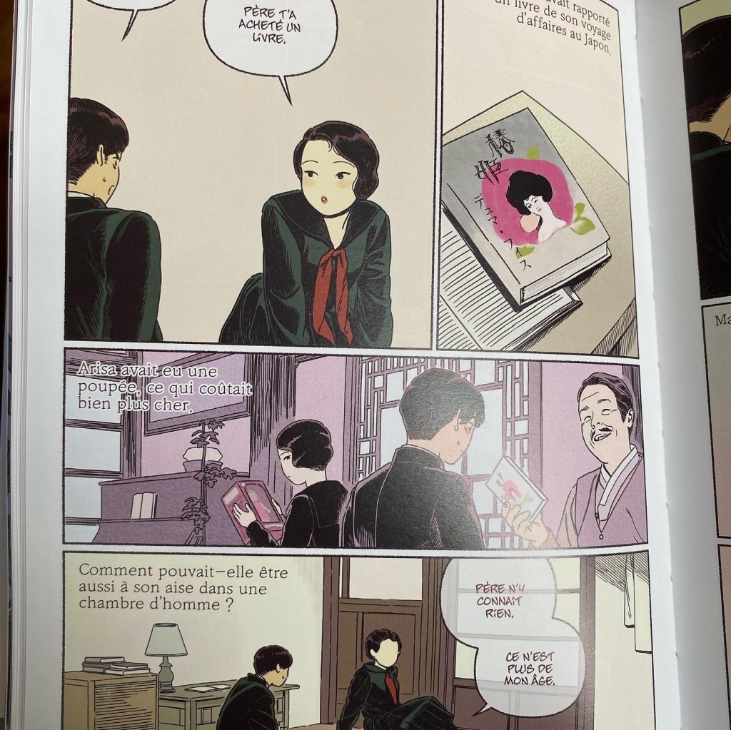 Cette superbe bande dessinée en couleurs est signée de Yudori et nous plonge dans un pays sous le joug japonais mais l’influence de l’Occident : qu’il s’agisse des rapports homme-femme, de la culture, de la cuisine, la société est confrontée à ces deux modes de vie si opposés et les tensions se font ressentir jusqu’au sein des familles.