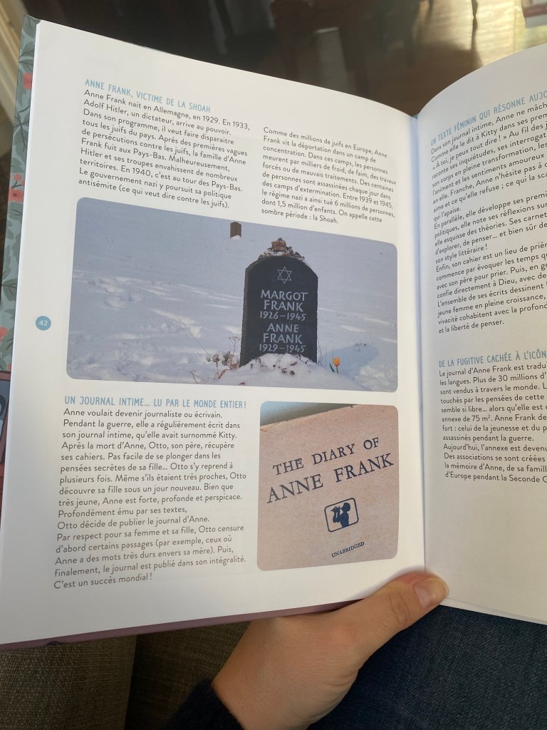 Mes enfants (les trois grands) ont à leur tour découvert les écrits d’Anne Frank quand ils étaient en 3e et ce récit continue de toucher les cœurs sans prendre une ride…